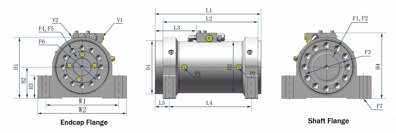 | F6 बोल्ट सर्कल व्यास, एंडकैप निकला हुआ किनारा एमएम | 108 | 120 | 133 | 150 | 170 | 190 | 210 | 230 |